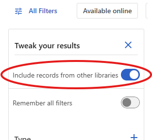 If you search lib.ugent.be and do not get (enough) search results, you can turn “Also show results from other libraries” on. You can find the slider on the left side of the page below “All Filters”.